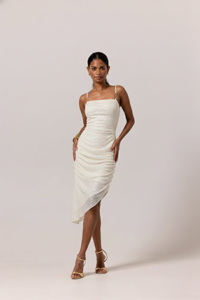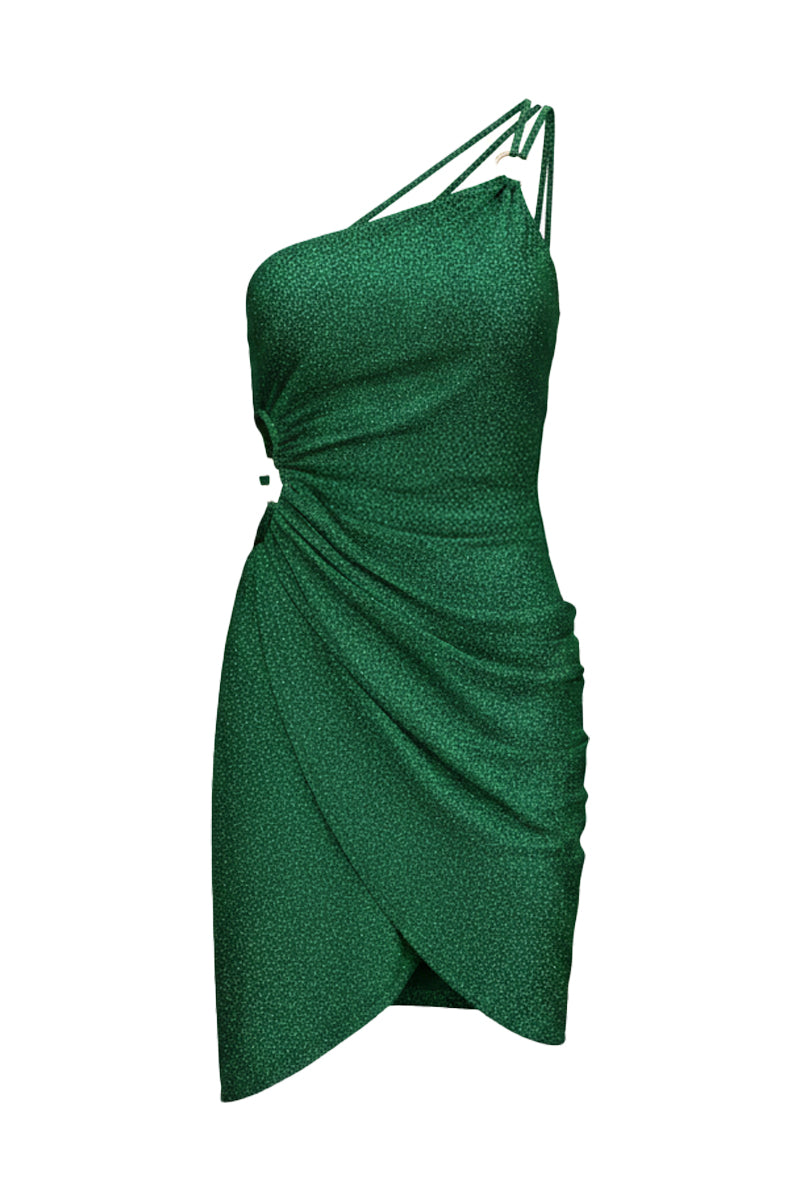 TRACY ASYMMETRIC DRESS - Green Lurex