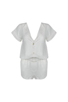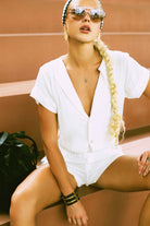 Look simply stunning in this clean-look and comfy SANTA MONICA Jumpsuit. Featuring a vintage belt, short sleeves, and a trendy 100% Cotton in clean Ivory hue, it's the perfect one-and-done look for when the temps are high and you're looking for an easy, breezy way to stay stylish! It's the perfect choice for those balmy summer days.