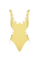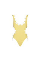 A twist of intertwined straps on the neckline and hemline of the SO SWEET one-piece adds a playful touch to this timeless design. Made from soft terry fabric in a vibrant Terry Mimosa color, this one-piece offers both style and comfort. It provides a flattering fit that keeps everything in shape while you enjoy the sun, making it the perfect choice for a cheerful and chic summer look.