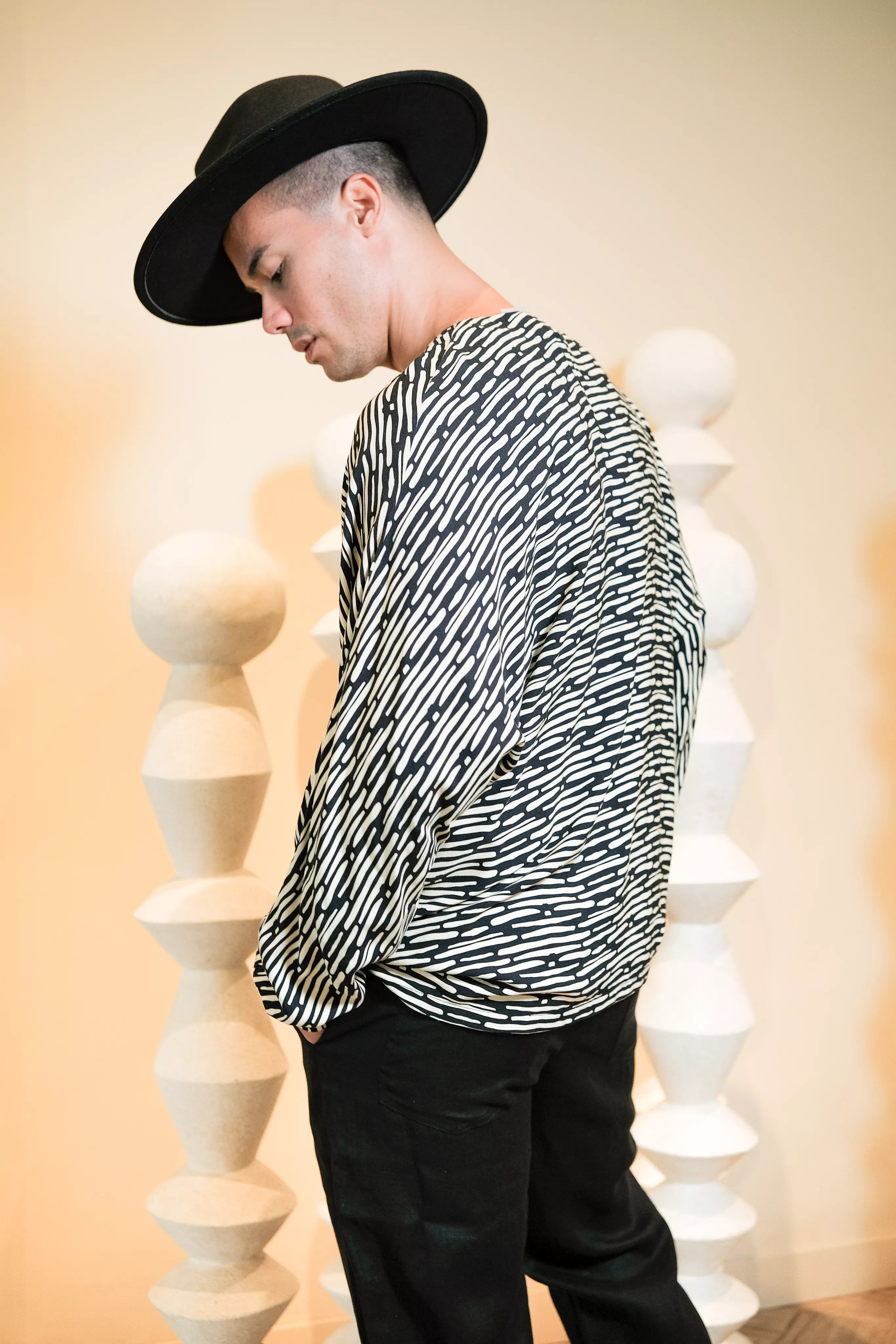 "A relaxed-fit shirt with collarless neck detail and a hidden button, AKIRA TOP comes in sateen fabric with an exquisite pattern to bring a unique touch to your overall outfit. The premium soft material and chic design guarantee you top-notch comfortability in an effortlessly polished look.