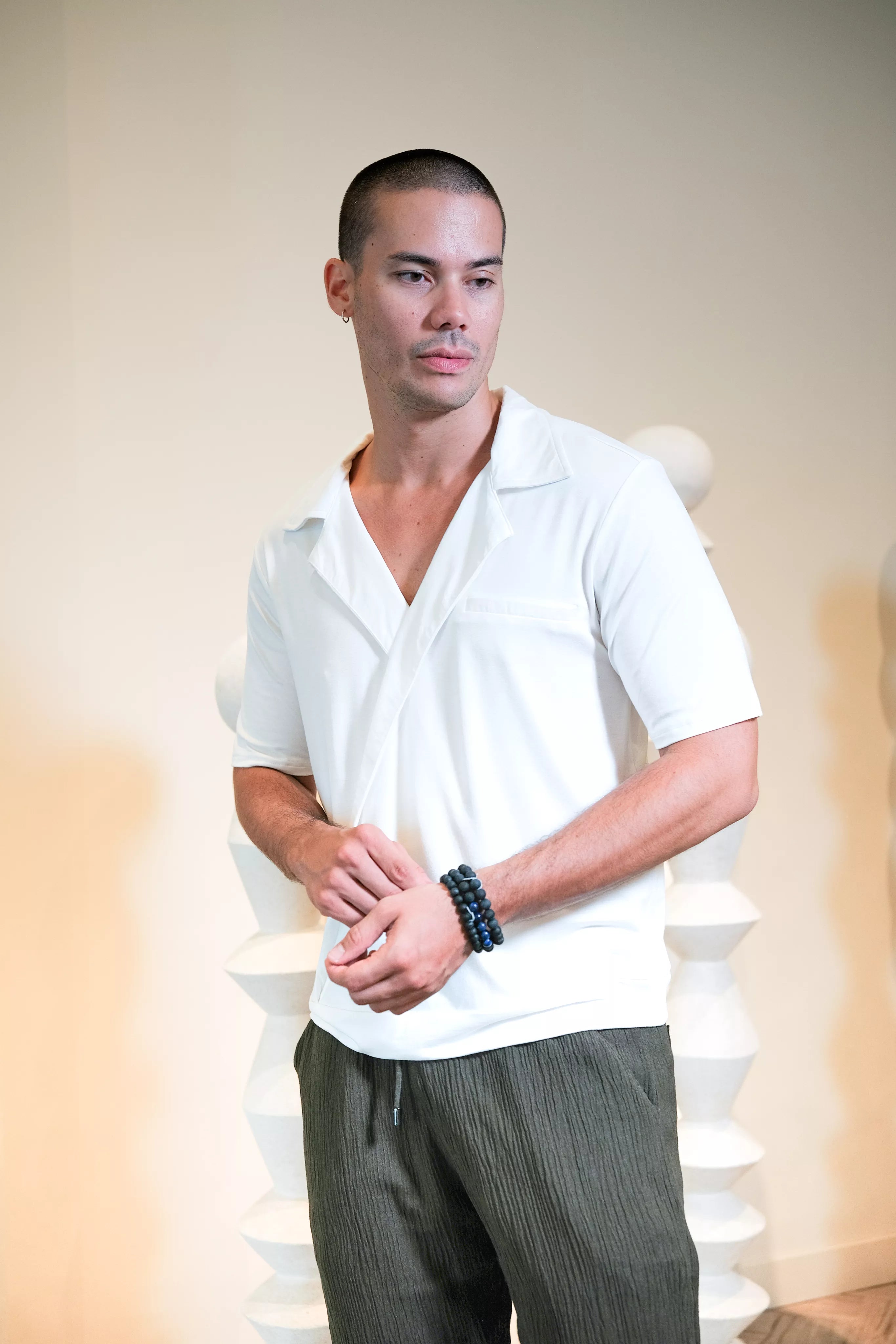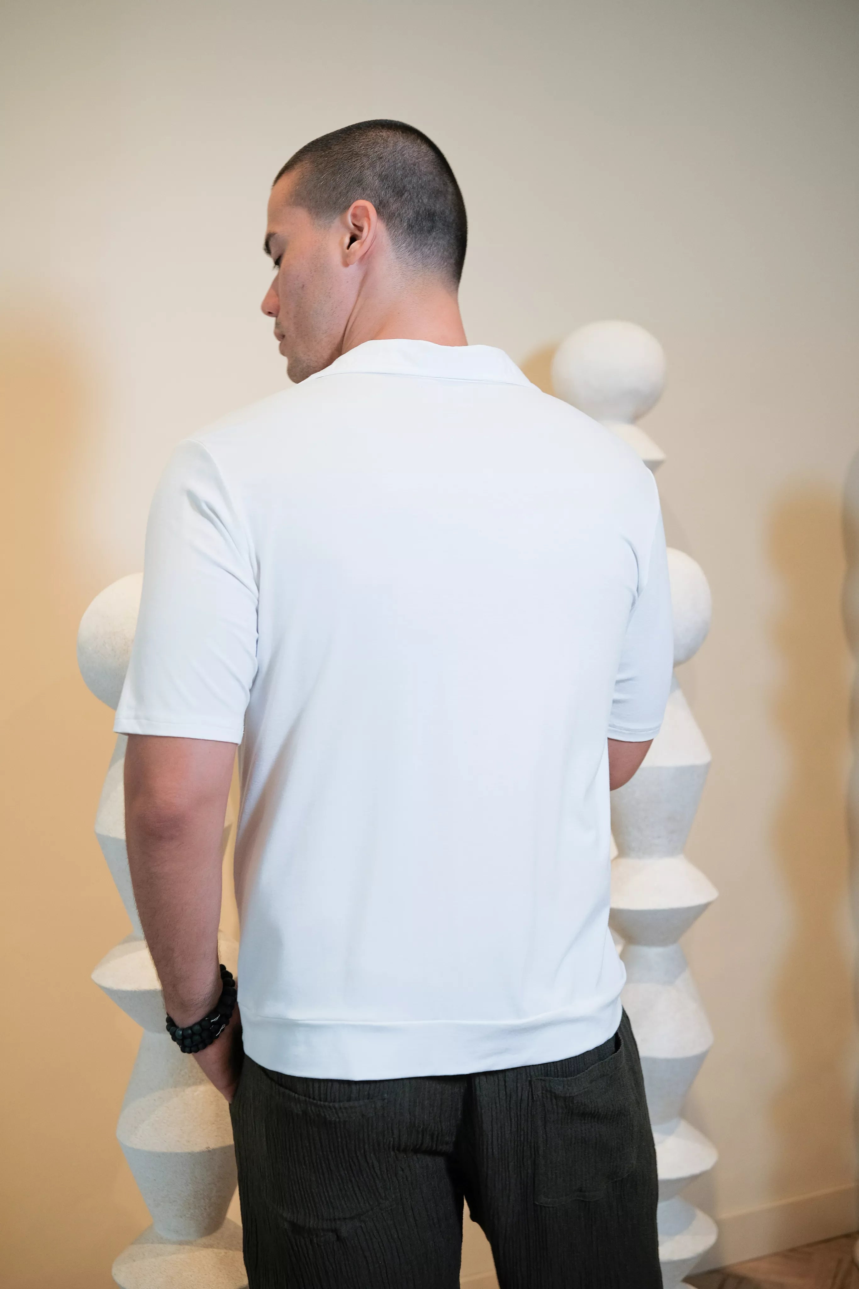 Elevate your wardrobe with the BRADY Top, a perfect blend of elegance and comfort. Crafted from a premium cotton spandex fabric, this airy and lightweight short-sleeve top ensures you stay cool and comfortable all day long. The sophisticated ivory hue adds a touch of class, making it a versatile addition to your collection.