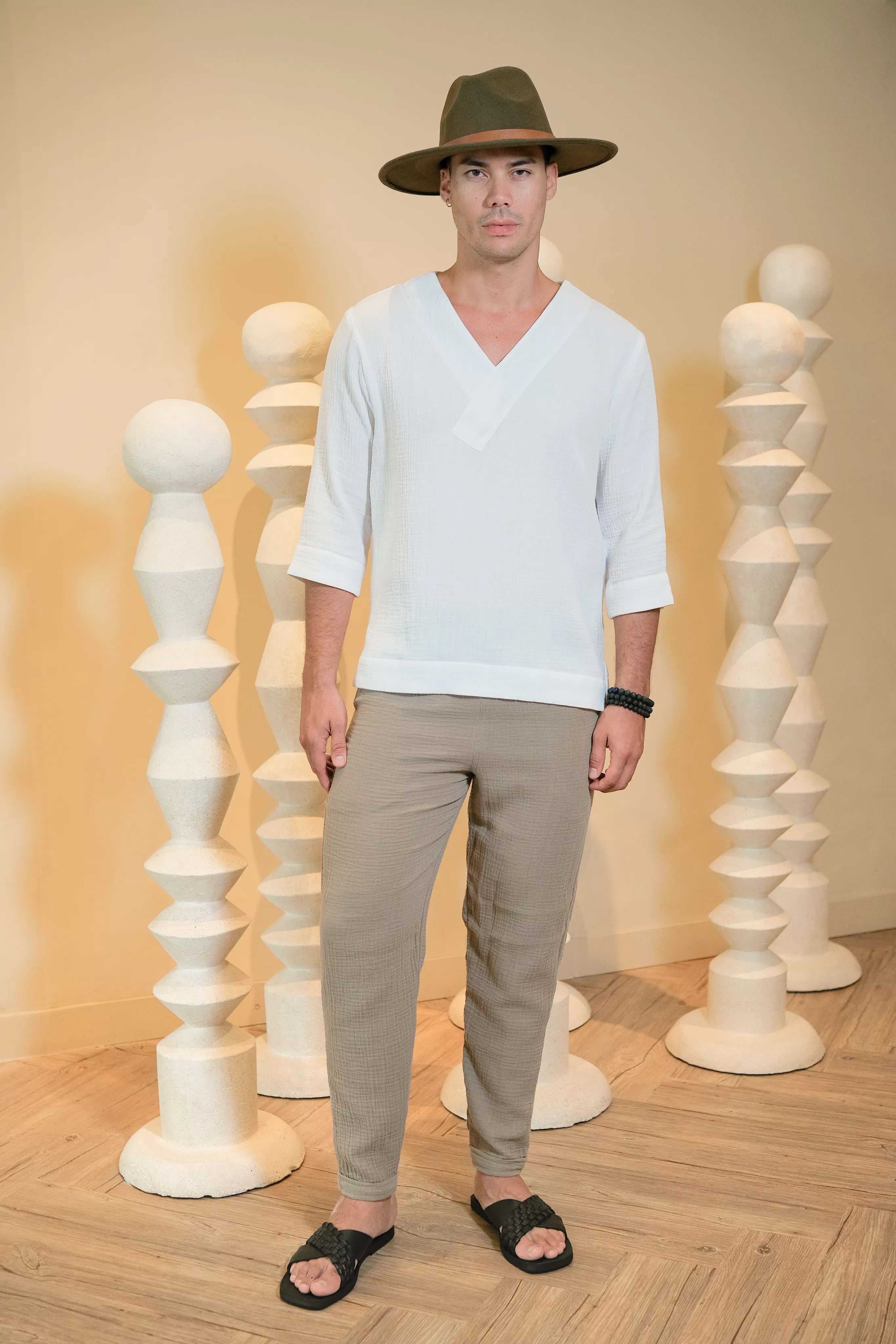 Achieve the perfect balance of comfort and elegance with the GABRIEL PANTS for Men in Stone Grey. Made from breathable and comfortable textured cotton fabric, these pants ensure all-day comfort. The sophisticated stone grey color adds a modern and versatile touch to any wardrobe.