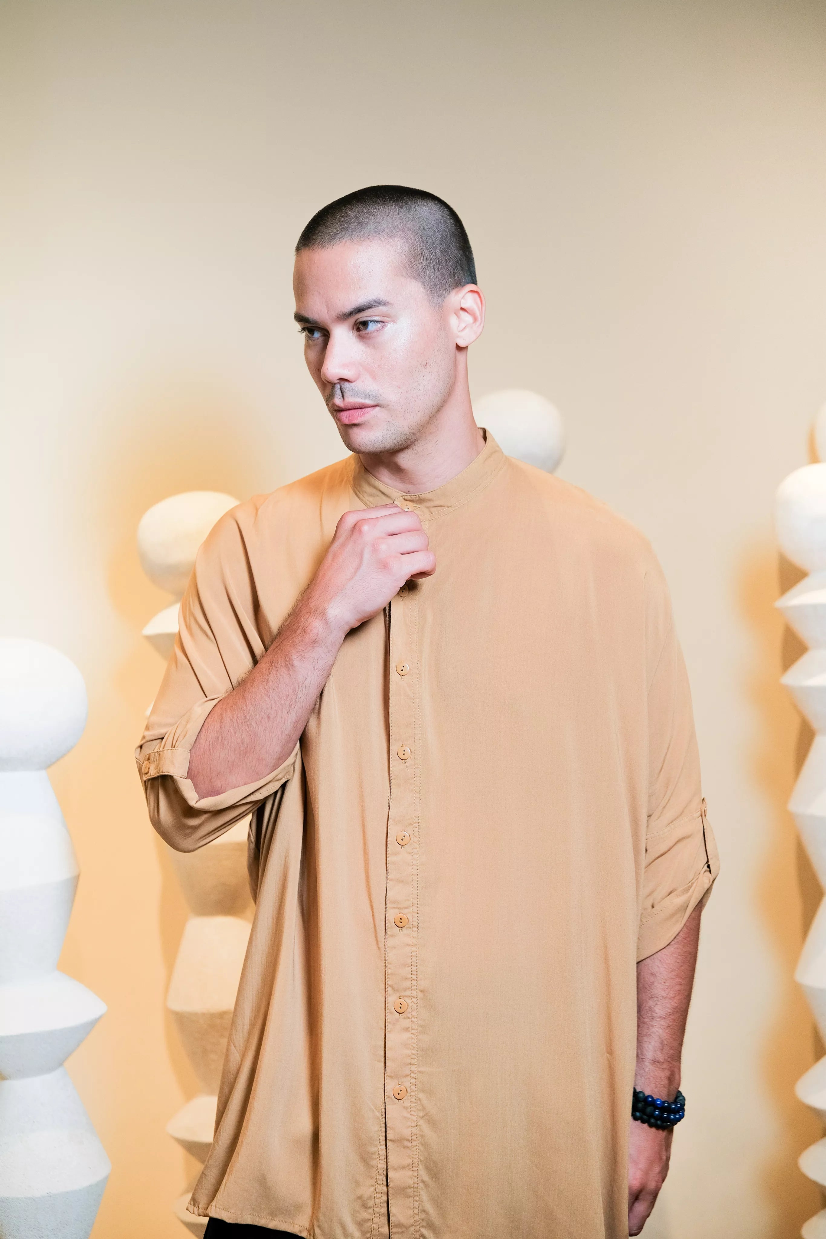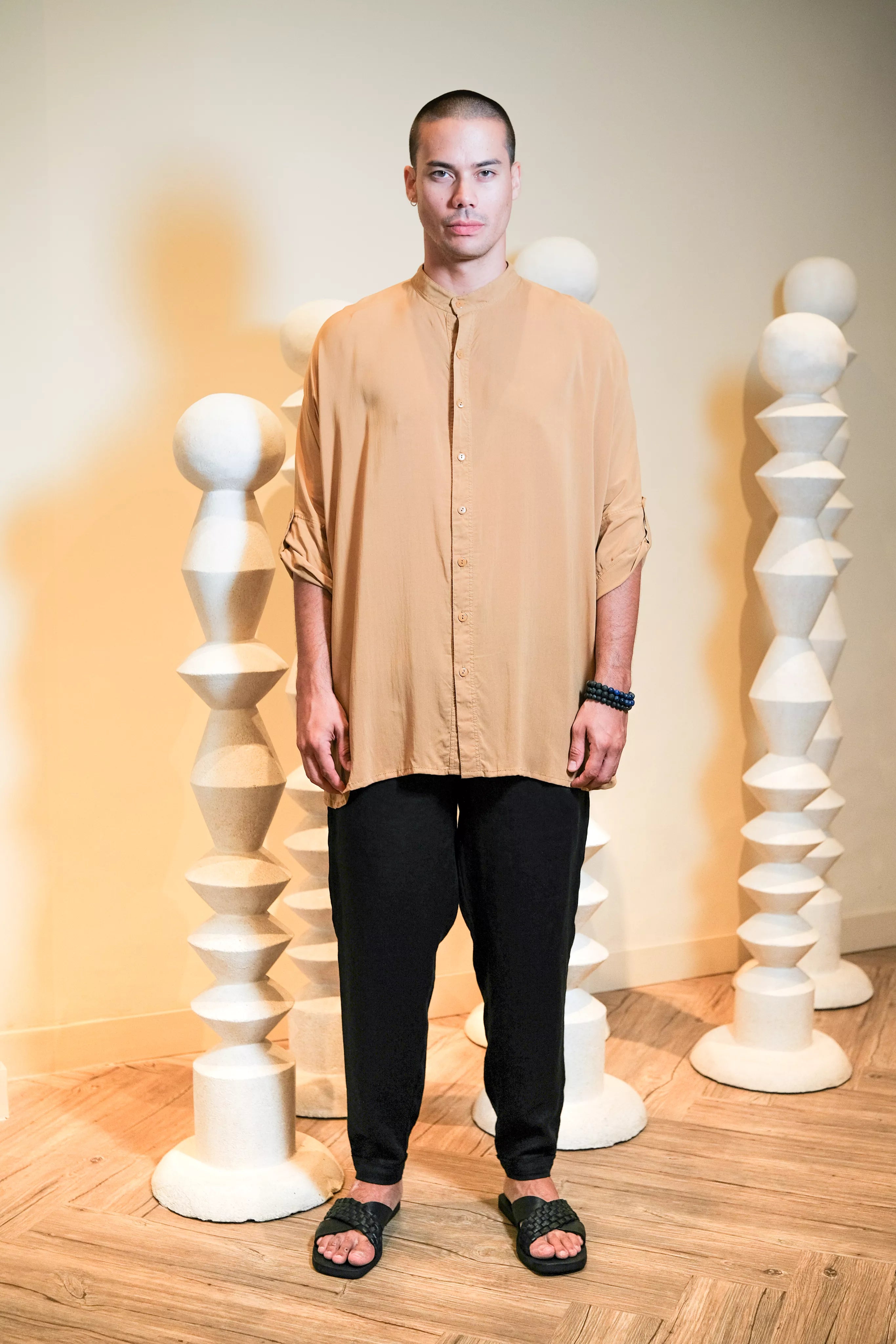 Designed with a relaxed fit, the FLORES Shirt features a mandarin collar and kimono sleeves for a modern, refined look. The adjustable sleeve length allows you to personalize your style and comfort, making it perfect for any occasion. Whether you prefer long sleeves or a shorter, more casual look, the FLORES Shirt adapts effortlessly to your needs.