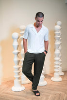 Step into style and comfort with the GABRIEL PANTS for Men in Khaki. Made from breathable and comfortable textured cotton fabric, these pants are designed for all-day wear. The classic khaki color adds a versatile and sophisticated touch to any wardrobe.