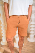 Show drafts Elevate your casual comfort with the GABRIEL SHORT in BROWN, breathable textured cotton shorts for men.