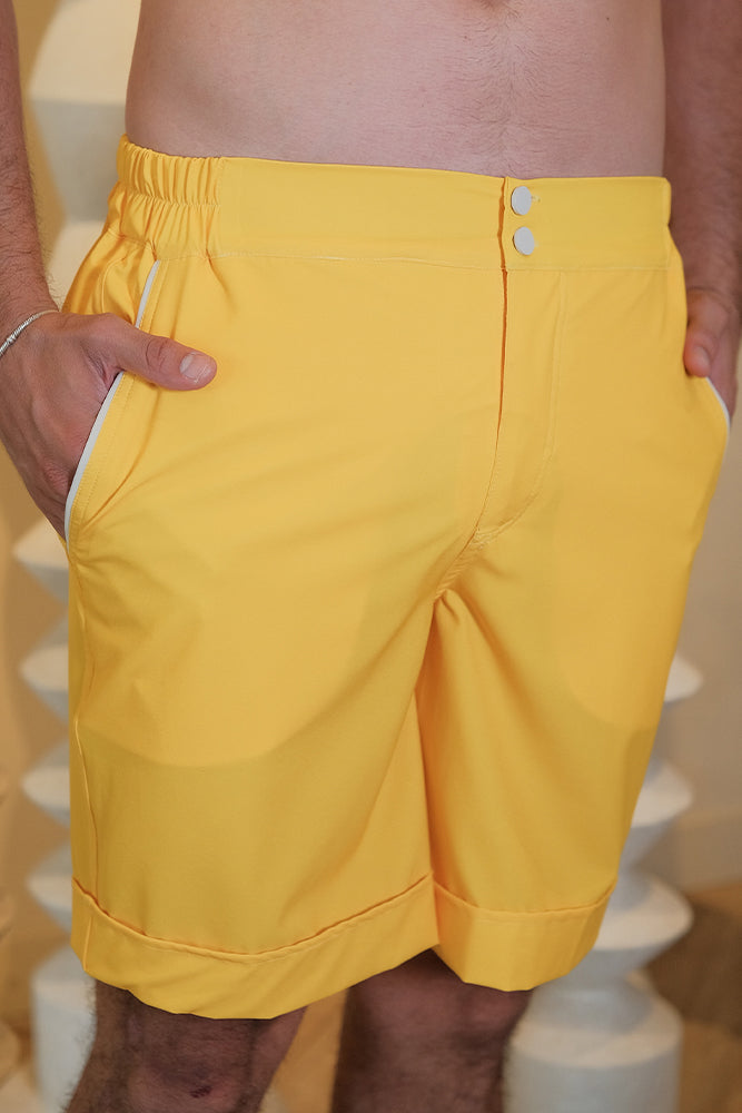Hit the beach in style with the KEN TRUNK YELLOW, eco-friendly swim trunks made for comfort and fun.