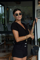 Look simply stunning in this clean-look and comfy SANTA MONICA Jumpsuit. Featuring a vintage belt, short sleeves, and a trendy 100% Cotton in elegant Black hue, it's the perfect one-and-done look for when the temps are high and you're looking for an easy, breezy way to stay stylish! It's the perfect choice for those balmy summer days.