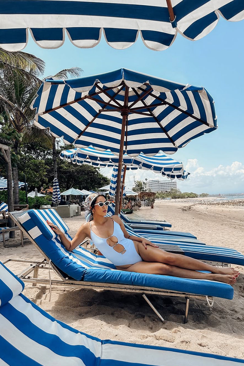 PANAMA One-Piece is not your ordinary swimwsuit. The deep U-shape cutout at the front is embellished by clear rings that give an elegant focal point. Comfortable to wear all-day as your pool or beach uniform because of the soft fabric in light blue color and the thin straps that flatter your shoulder lines.
