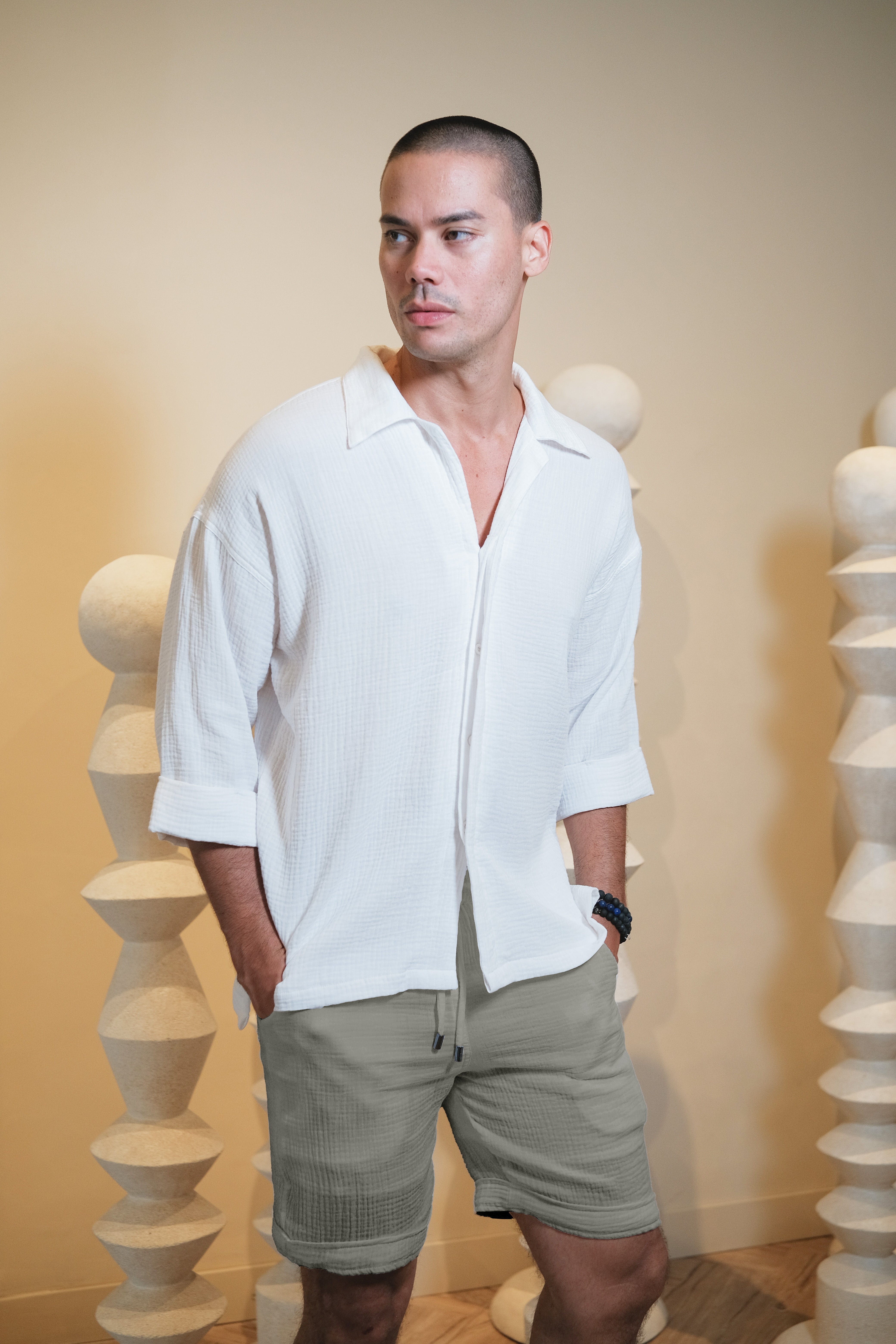 Parfait pour les sorties décontractées ou les week-ends décontractés, le SHORT GABRIEL en ivoire offre à la fois confort et style dans une seule pièce polyvalente.