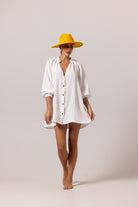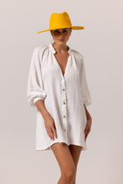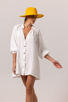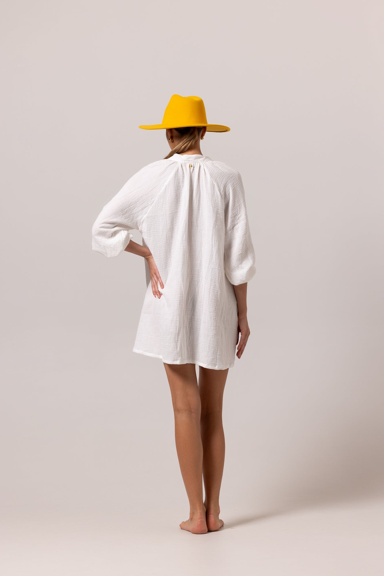 "Une journée sans effort nécessite une robe chic sans effort que vous pouvez enfiler et avoir l'air magnifique néanmoins. Présentation de la MINI ROBE LA PLAGE qui sera certainement votre prochain incontournable de votre garde-robe. Décolleté en V profond pour flatter votre silhouette supérieure, manches 3/4 et coupe ample. Polyvalent mais moderne avec une couleur blanc cassé neutre.