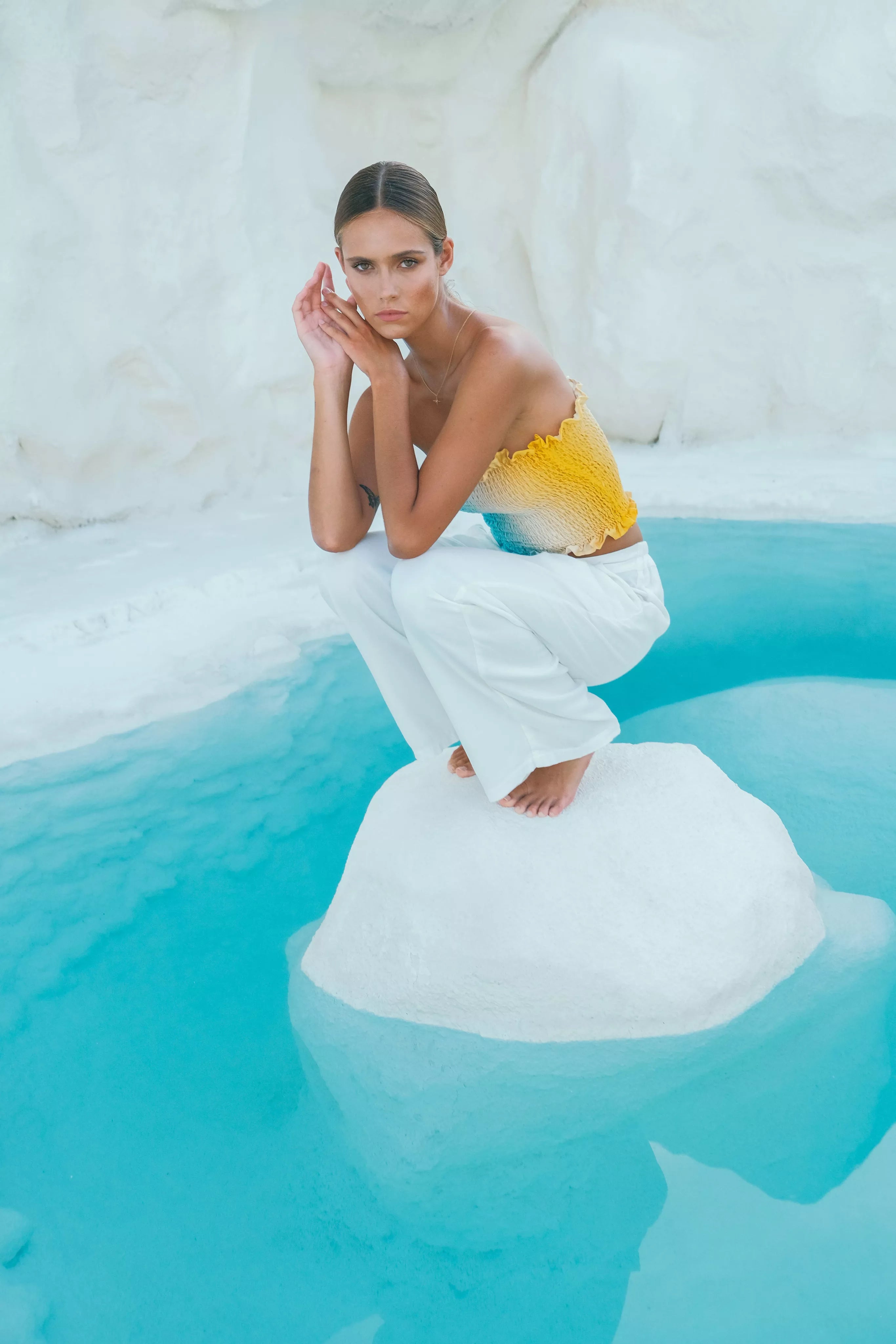 « Attrapez les vagues avec style avec SMOKIE dans un coloris bleu-ivoire-jaune ombré qui convient à l'été. Les détails froncés sur le corsage complètent votre courbe tout en vous offrant un confort maximal.