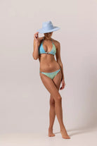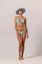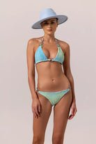 Rafraîchissez votre look de plage avec ce bikini bleu SUNSET SMOKE, inspiré de notre style de vie balinais. Mettez en valeur votre bronzage dans l'ensemble haut triangle coloré et culotte en tissu doux fumé. Orné d'un ensemble d'anneaux colorés élégants. Vous ne manquerez pas de faire tourner les têtes avec les couleurs ludiques ensoleillées et océaniques.