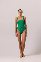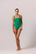 Confortable et intemporel sont les définitions du maillot de bain une pièce LIVIA. Réalisé dans un tissu vert doux avec des bretelles torsadées et un dos bas, complété par une ceinture délicate à la taille. Celui-ci est une célébration universelle pour toutes les morphologies.