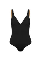 For women in search of a more classic shape and confort, we have you covered with this ROSIE swimsuit in Smocked Black. Complimented with AANOUKIS details signature, The Rosie Swimsuit features a V-neckline to give you a flirty touch. It goes along to golden braids at the back that gives a luxurious and chic vibes. It has a classic cut for moderate coverage, double fabric for thicker lining and support.