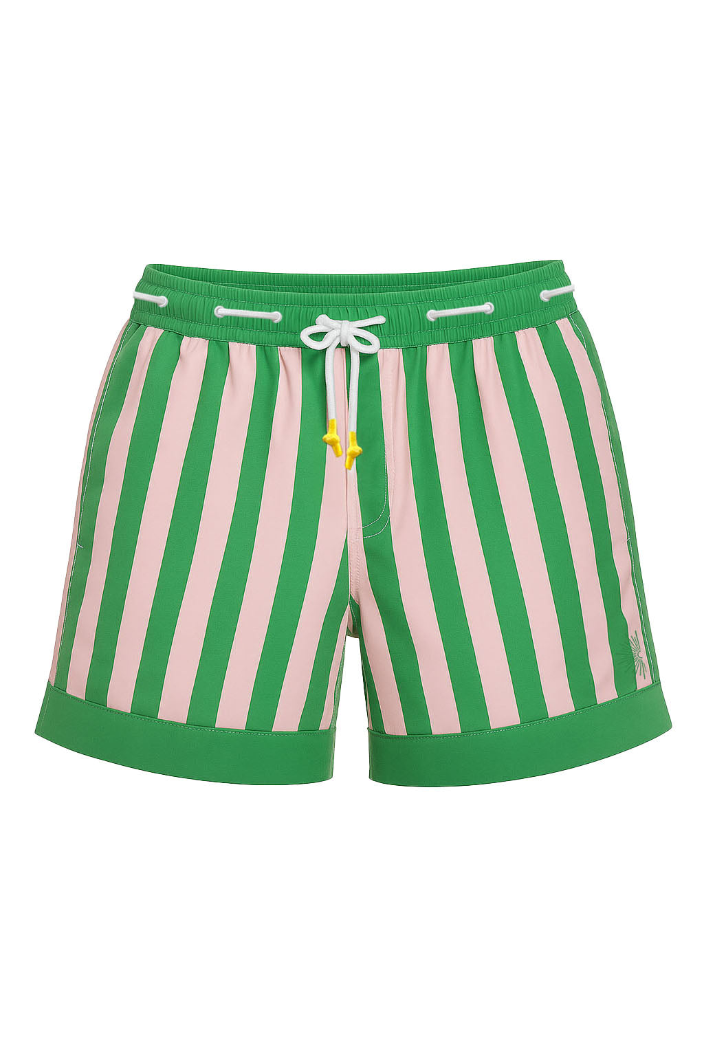 The KANO TRUNK in Soleil Stripes combines sustainability with functionality. Crafted from recycled stretch fabric, this shorter-length swim trunk ensures comfort and eco-awareness for your summer excursions. It offers both practical convenience and unique style for the conscious wearer.